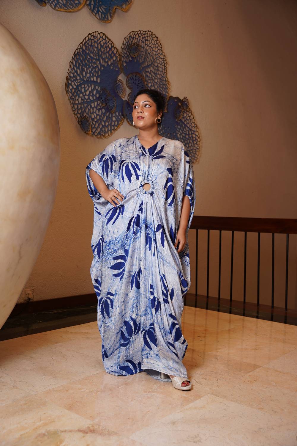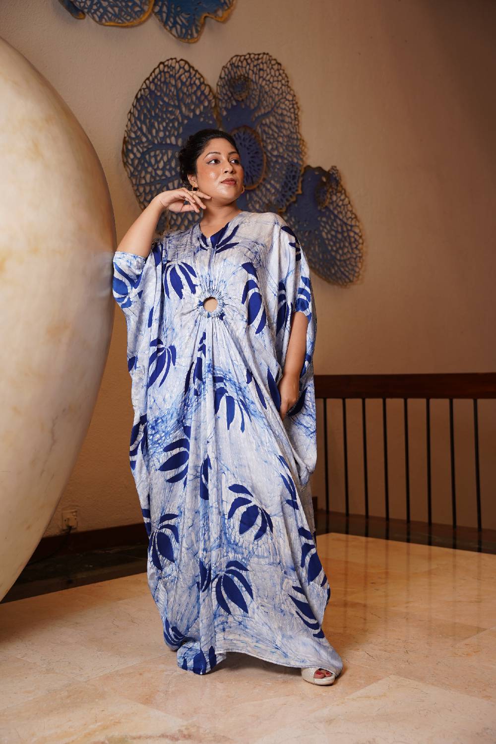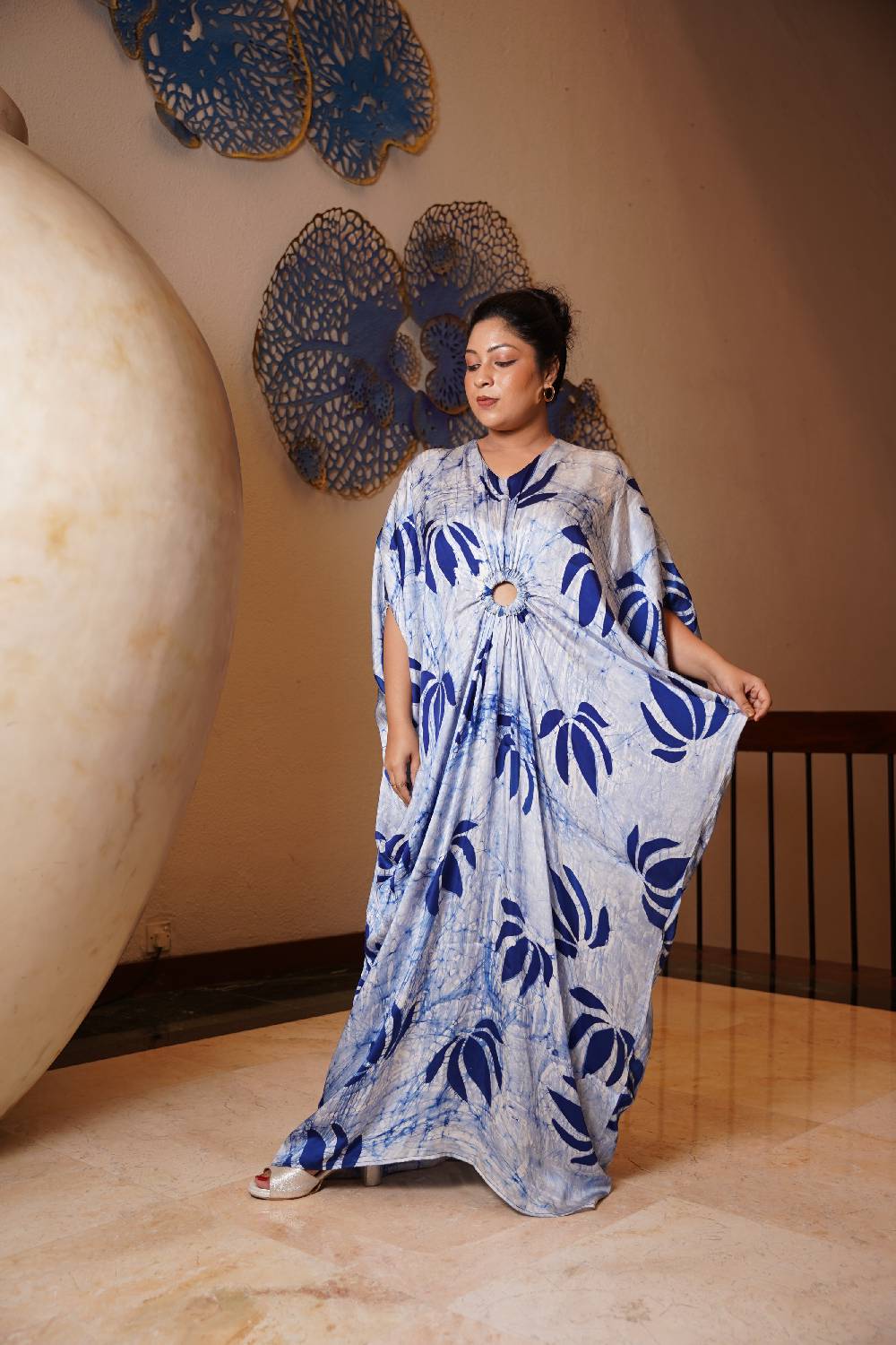 Floral designer wear silk Kaftan Dress