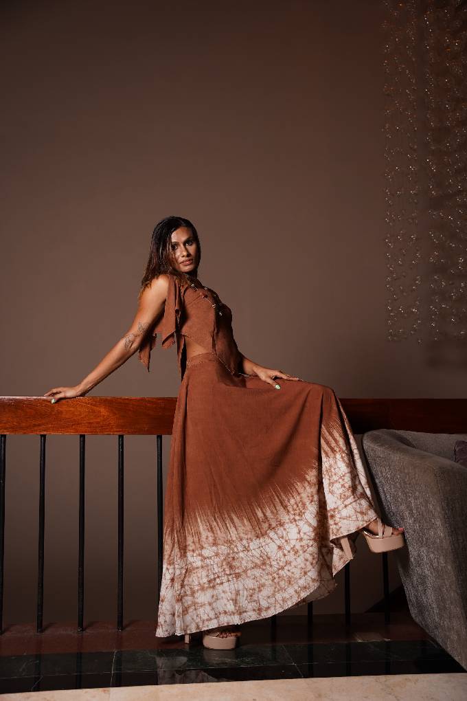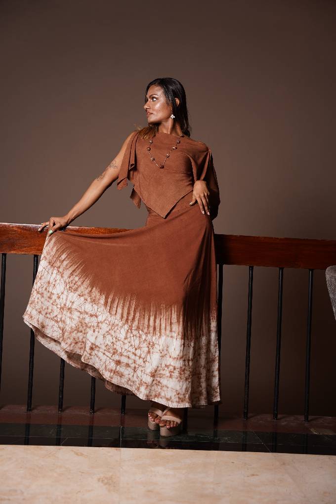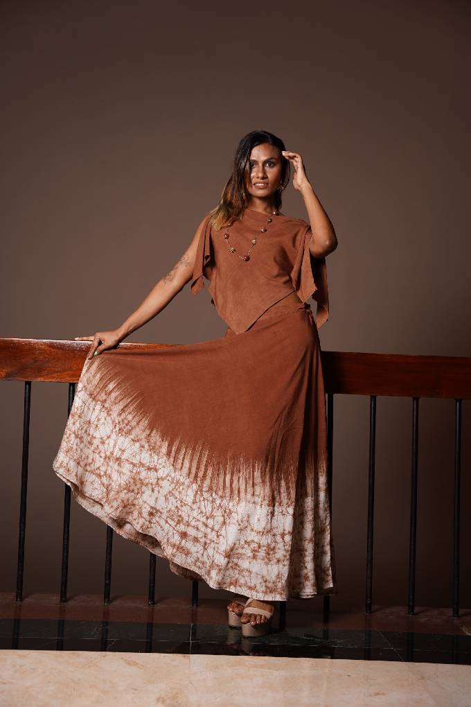 This skirt blends traditional batik with modern brushstroke textures, creating a unique cracked pattern. The 360° design adds volume and flow, making it a standout piece for any occasion. Lightweight and artistic, it’s perfect for those who love a fusion of culture and contemporary style.