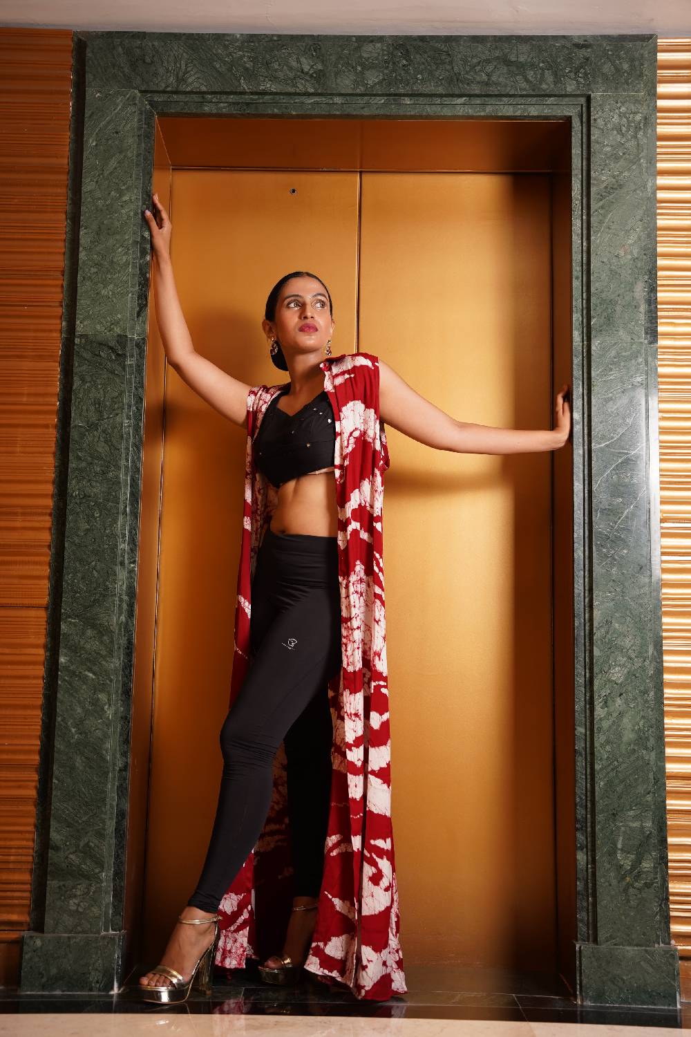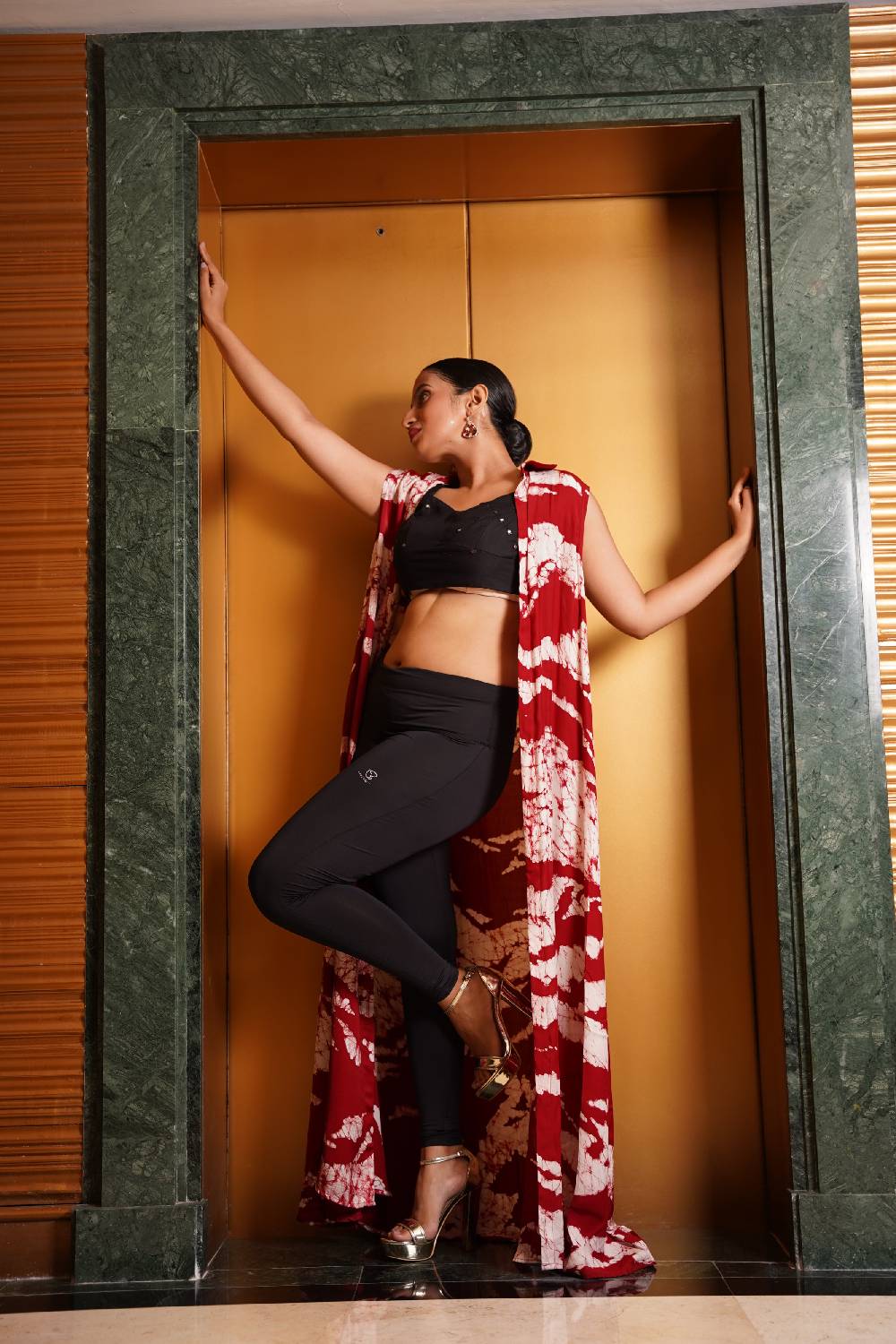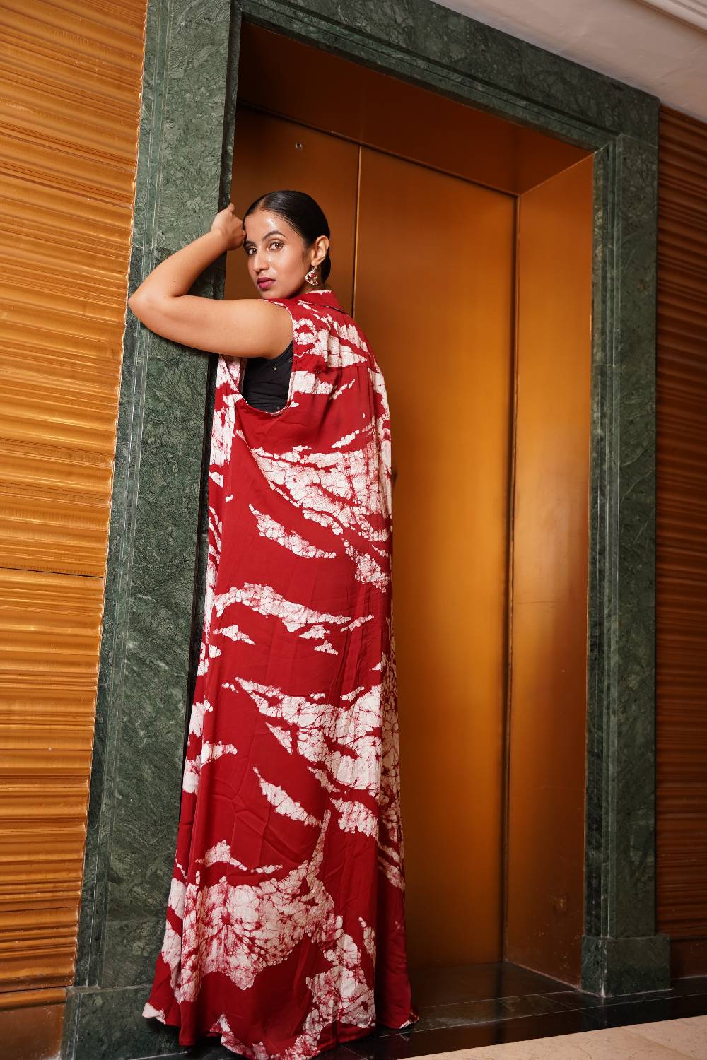 Raw silk dark peach color lily leaf inspired design Poncho dress